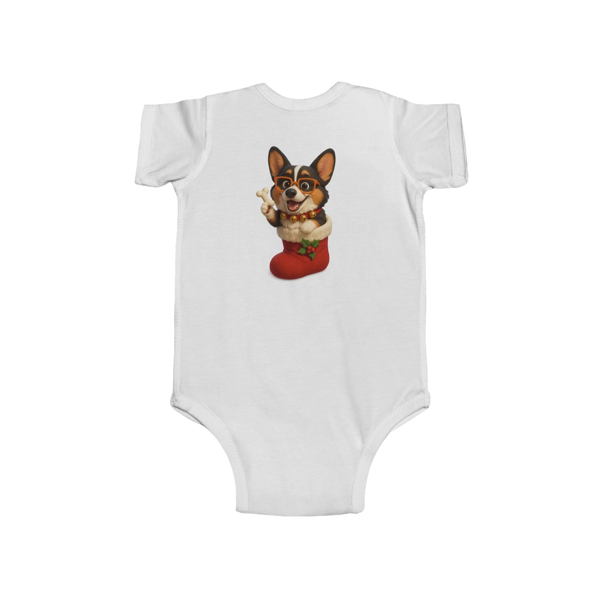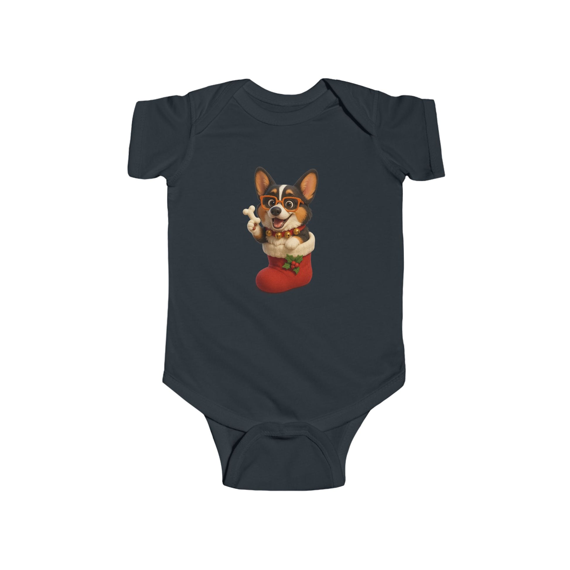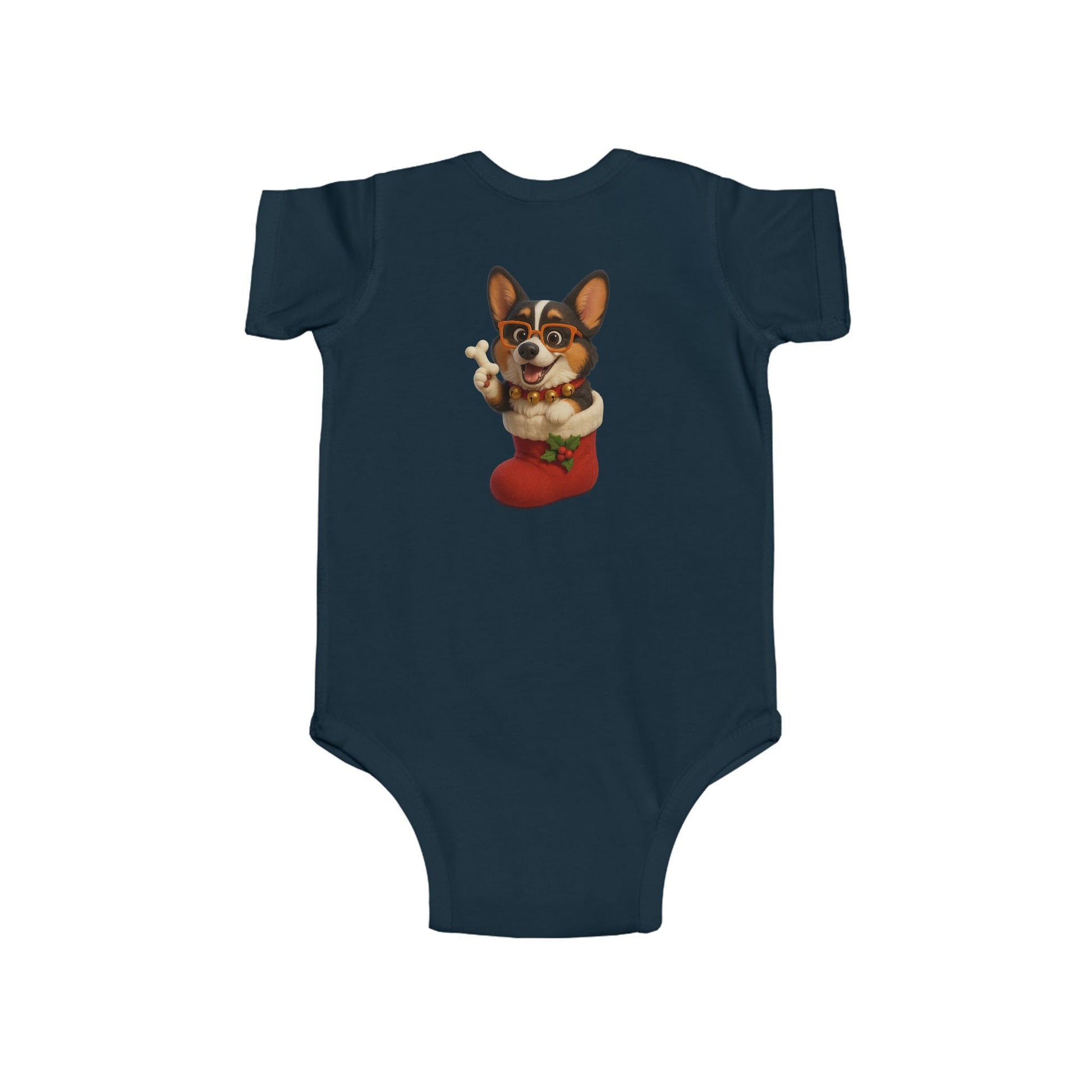 Baby Bodysuit — Cute Corgi in Christmas Stocking Infant Onesie