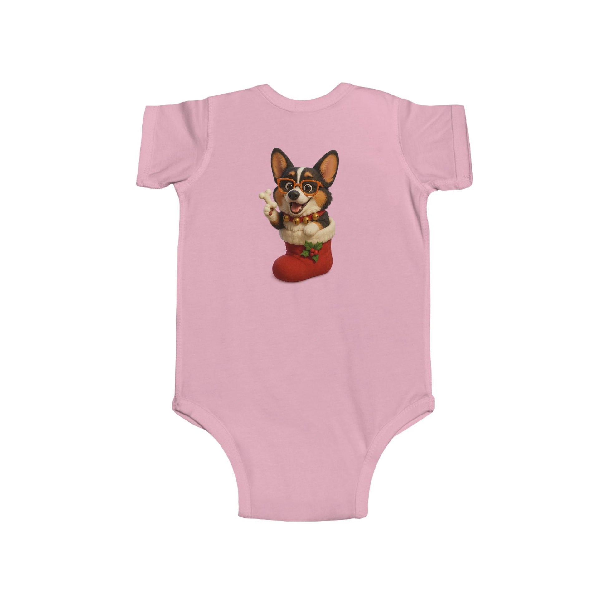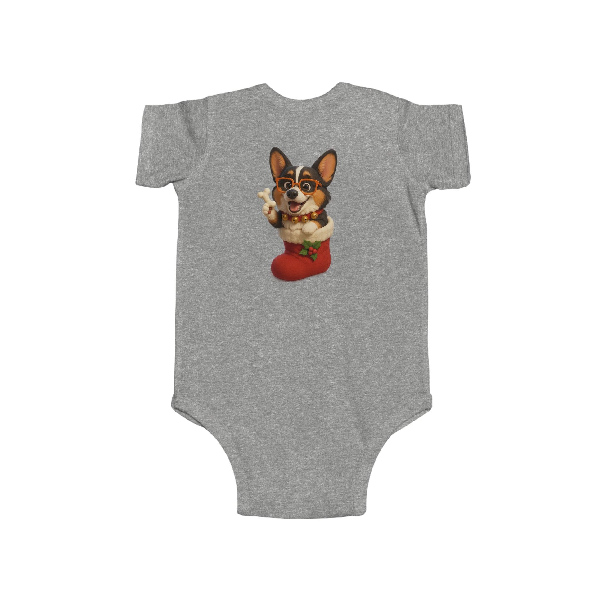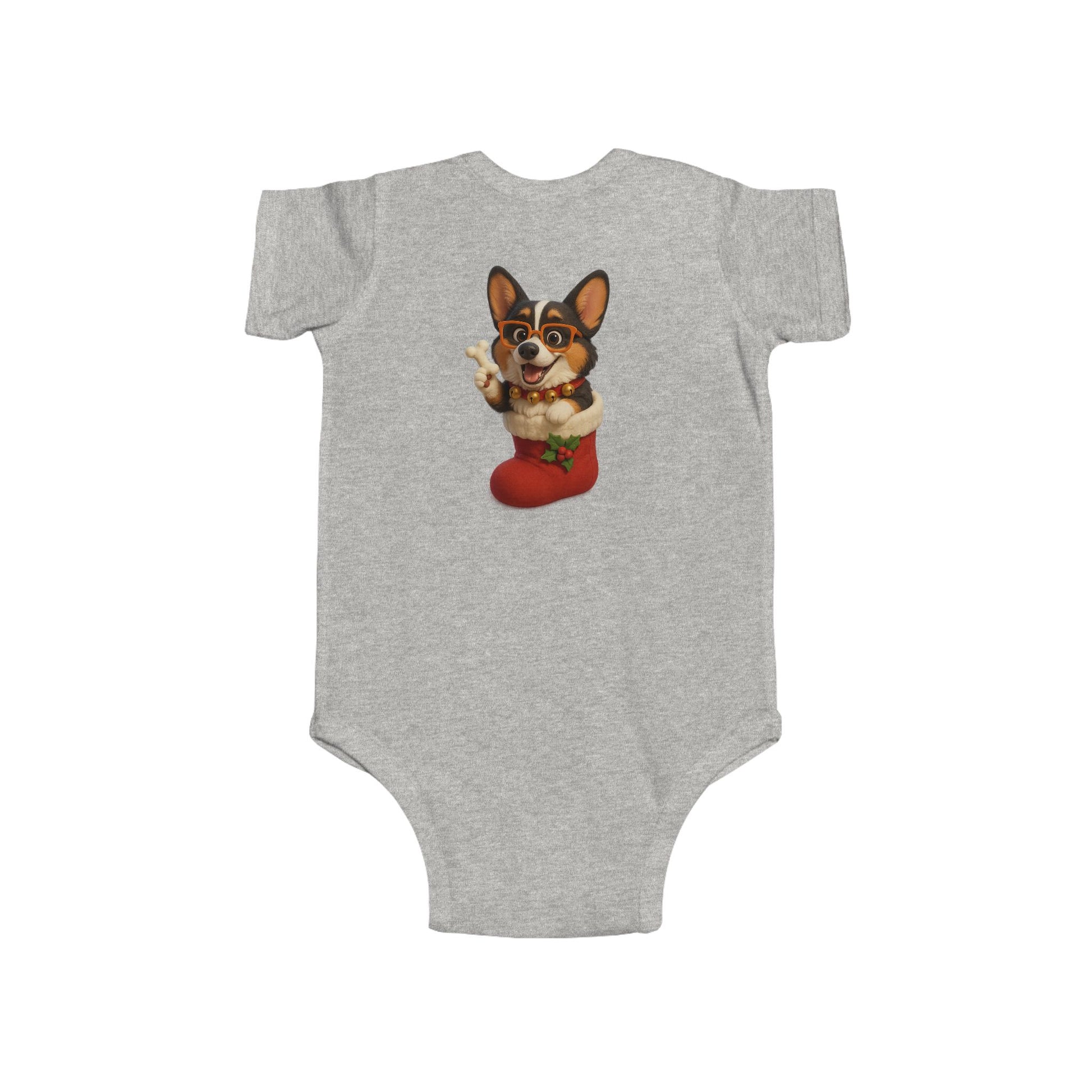 Baby Bodysuit — Cute Corgi in Christmas Stocking Infant Onesie