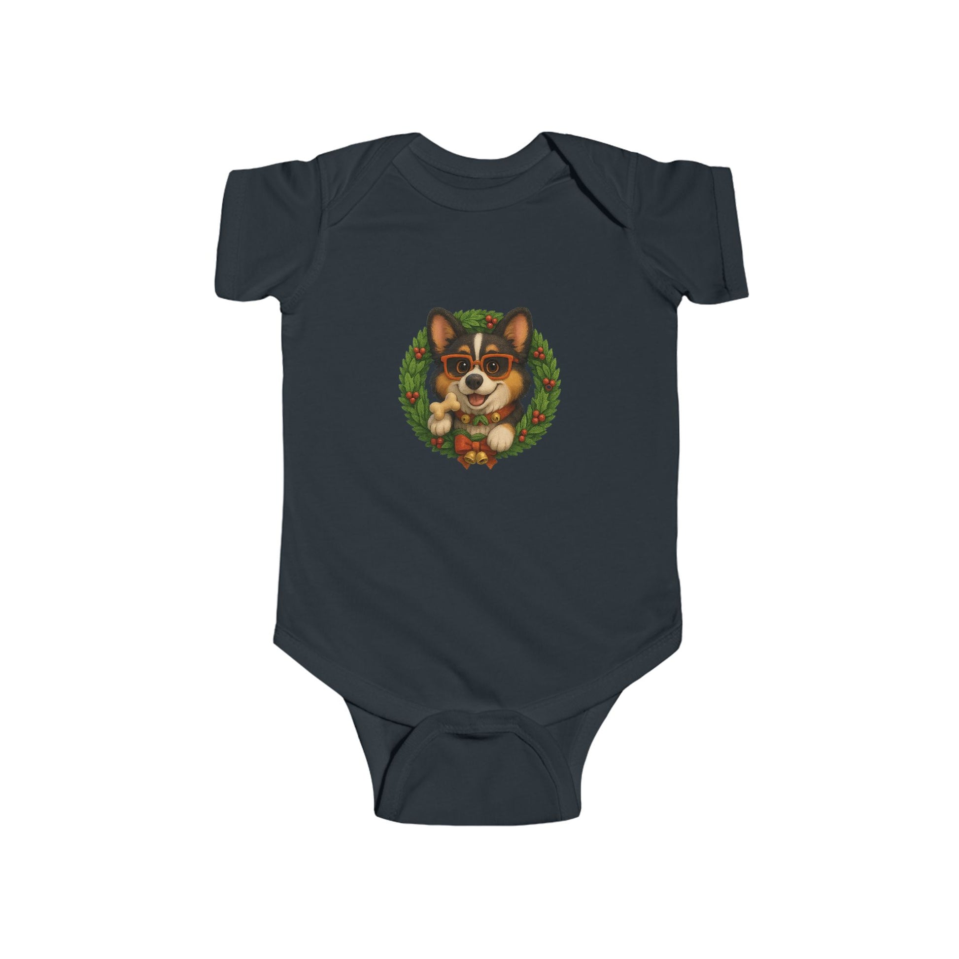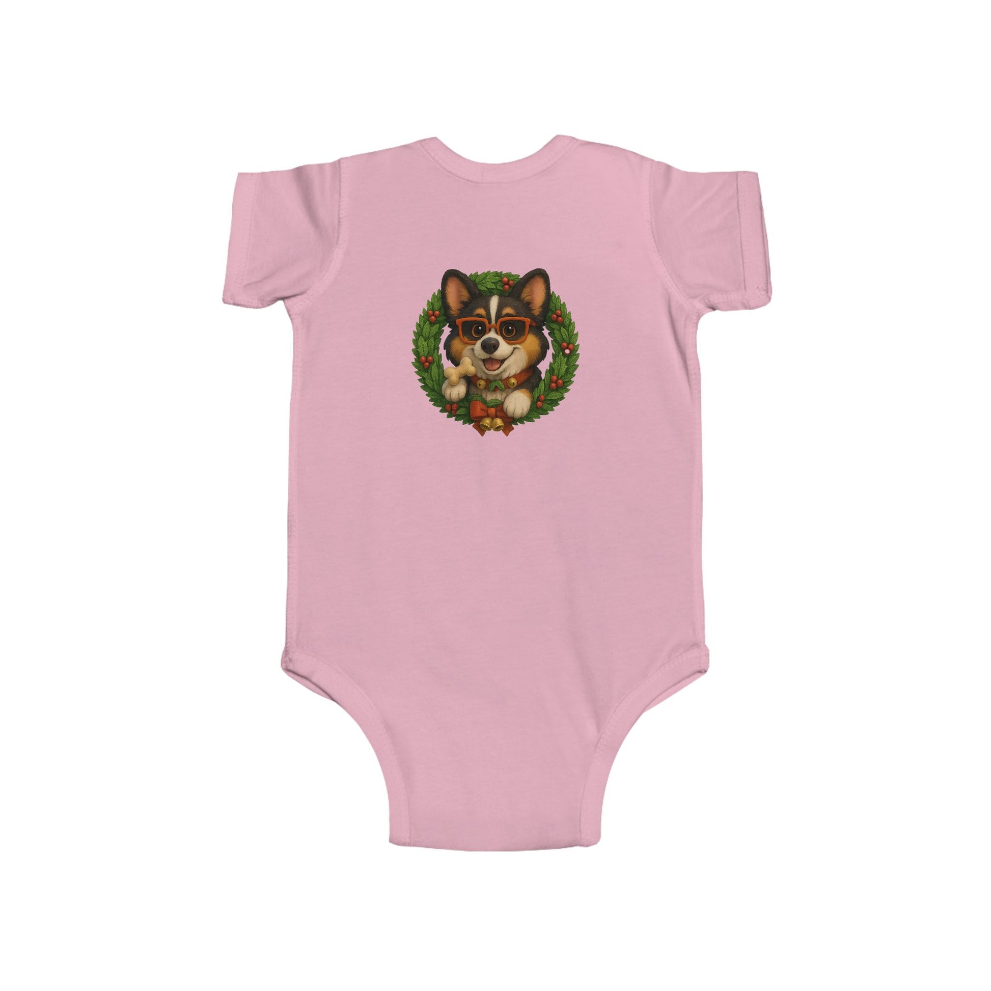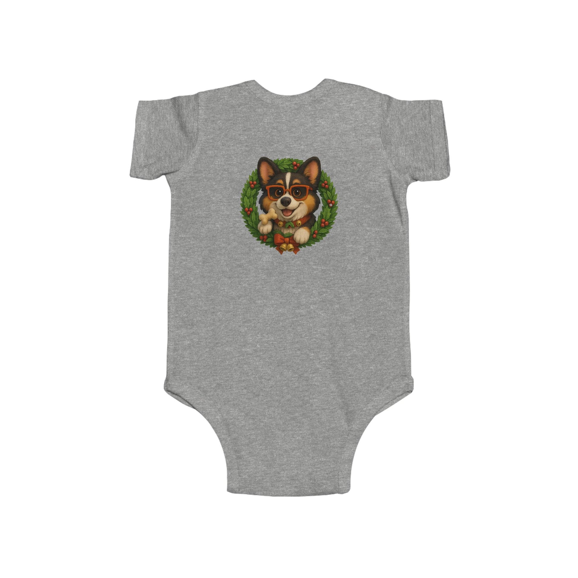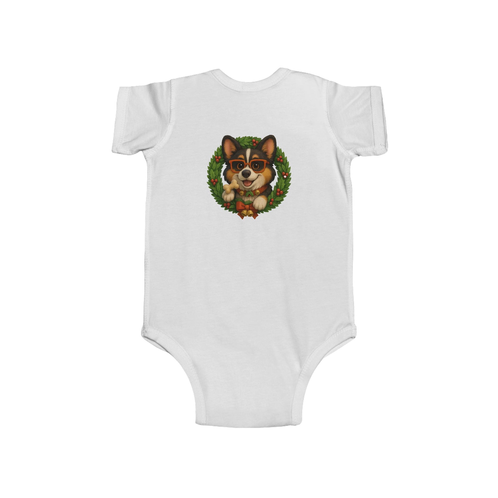 Baby Onesie with Corgi in Christmas Wreath – Holiday Infant Bodysuit