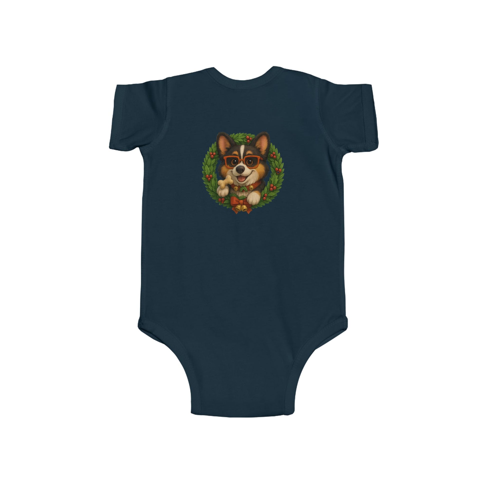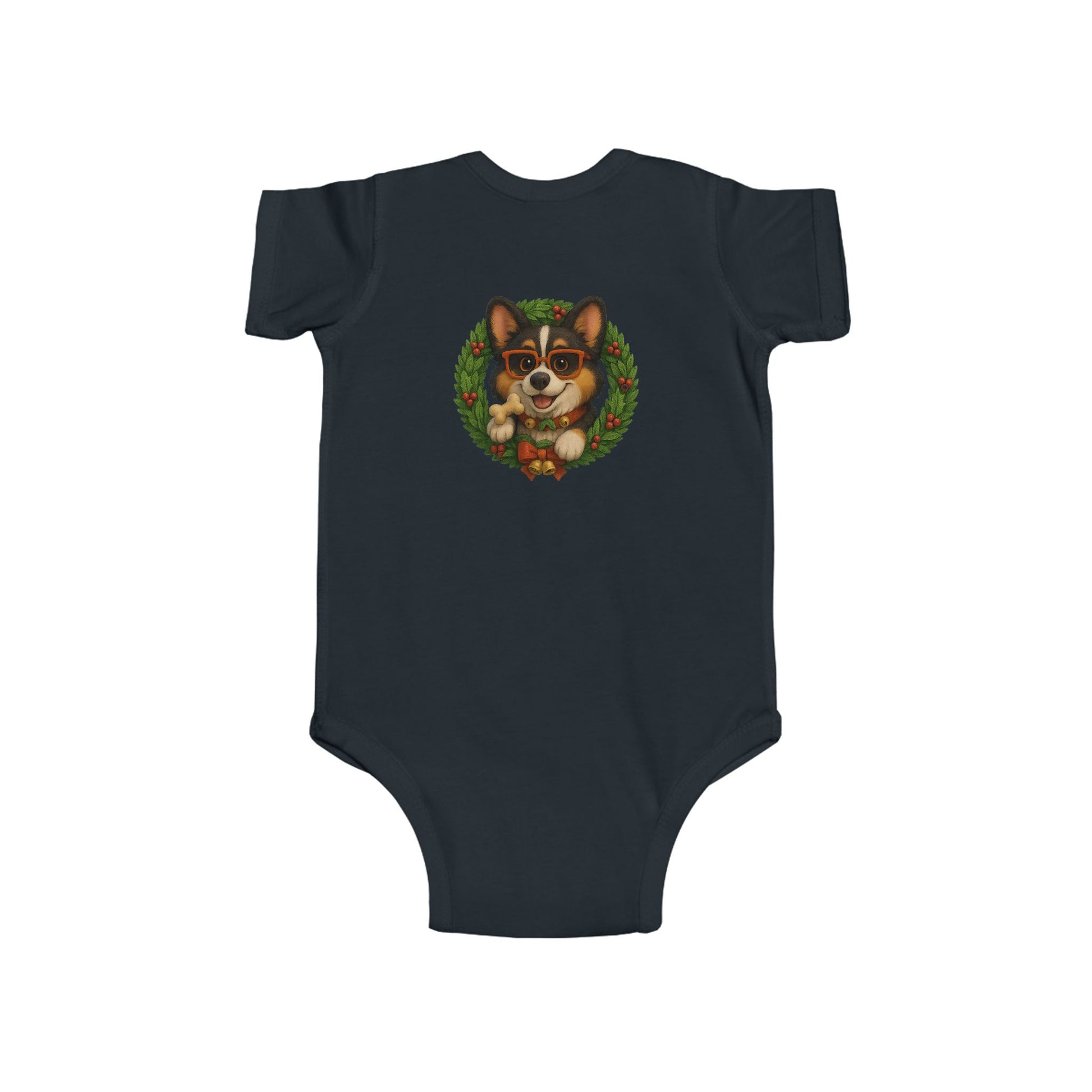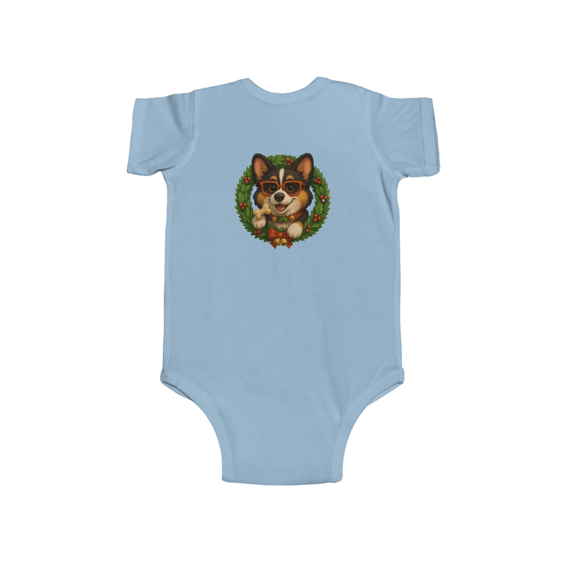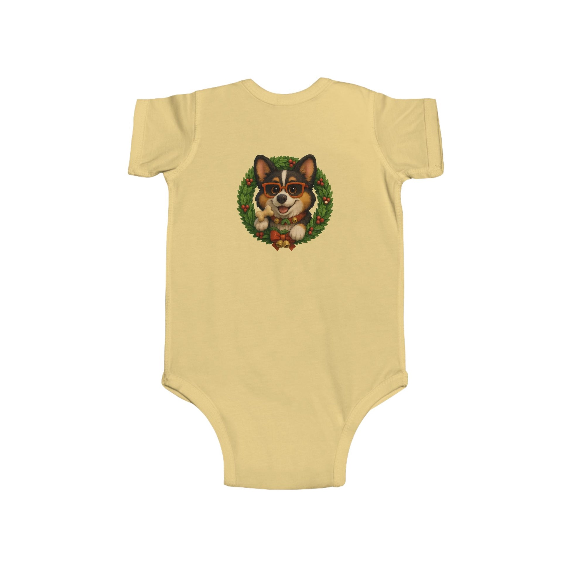 Baby Onesie with Corgi in Christmas Wreath – Holiday Infant Bodysuit