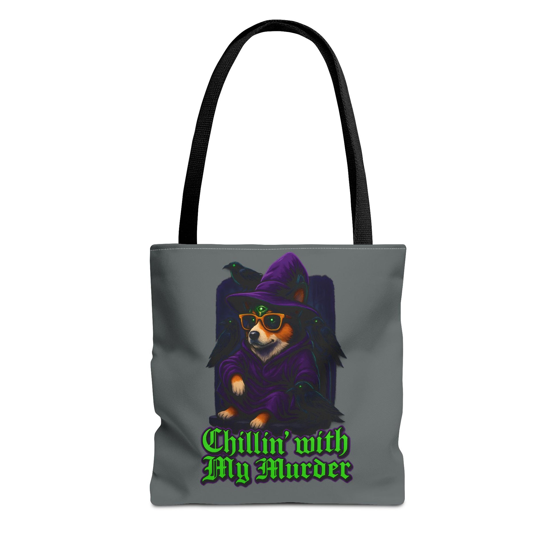 Chillin' with My Murder Tote Bag, Cute Dog Lover Bag, Halloween Tote, Witch Theme Bag, Stylish Pet Lover Gift