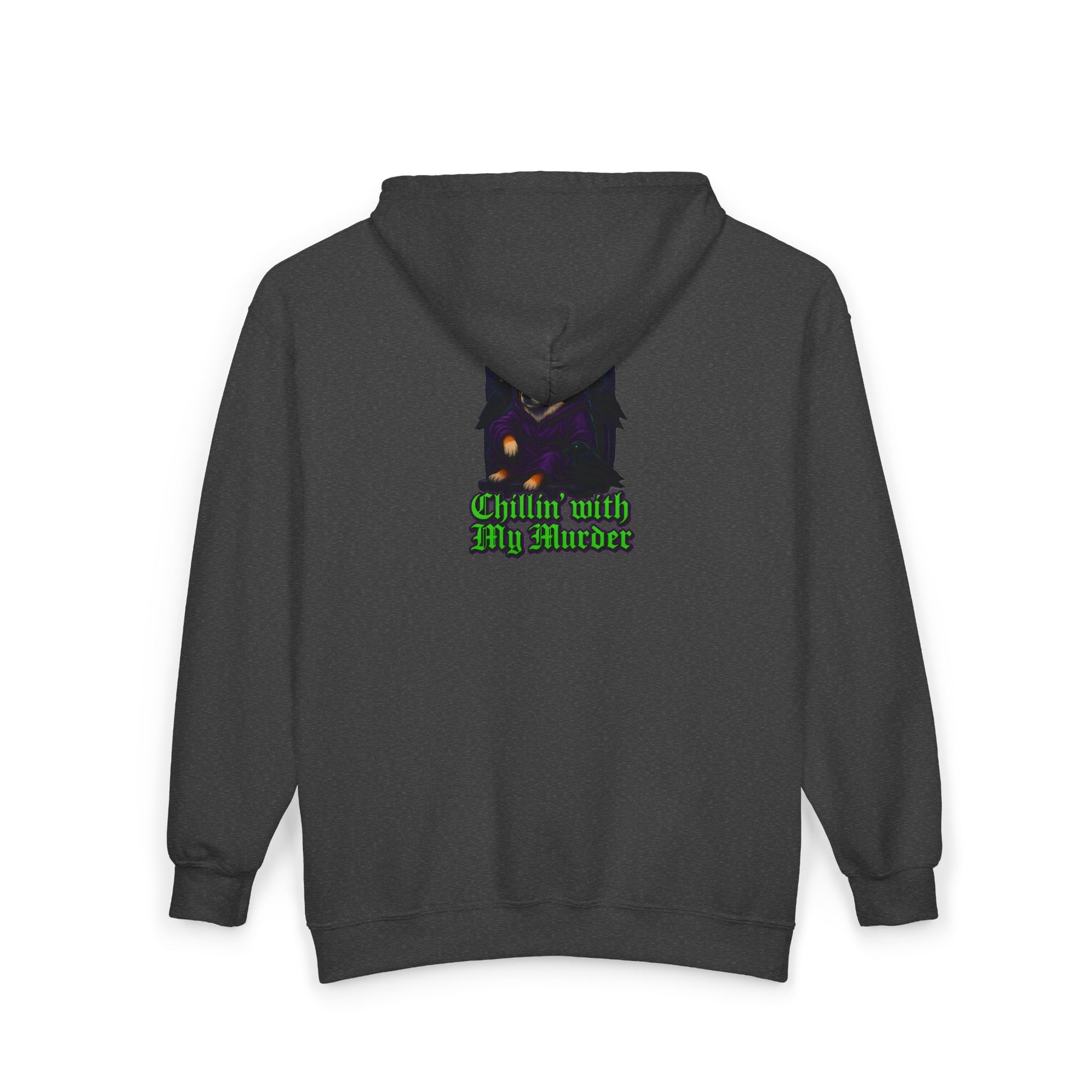 A cozy and stylish zip-up hoodie featuring a corgi and crow design, perfect for those who love unique and quirky clothing. Ideal for anyone looking to stay warm and stand out from the crowd. Relevant for casual wear, lounging at home, and animal lovers. Great for Halloween, everyday wear, and gifting to friends and family.