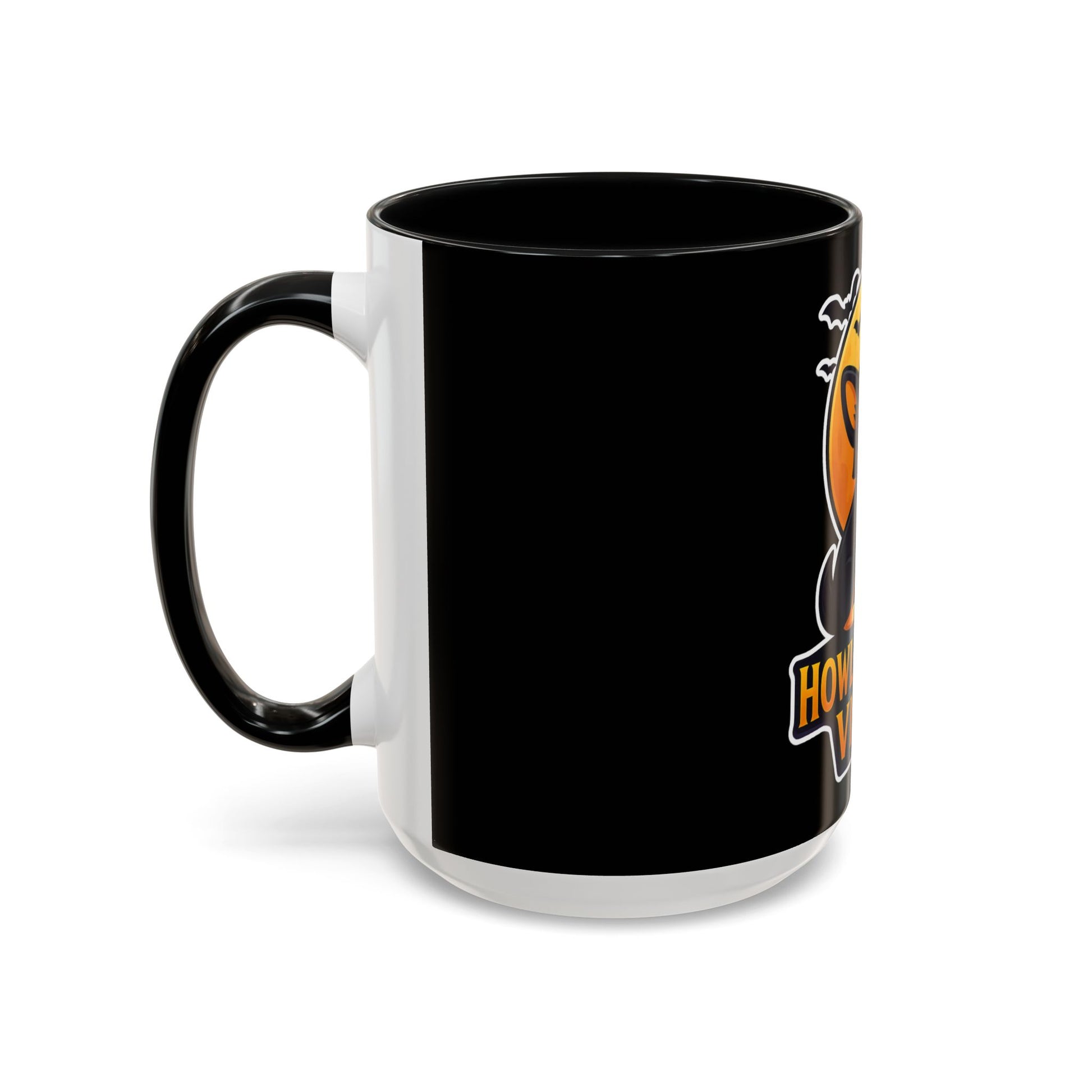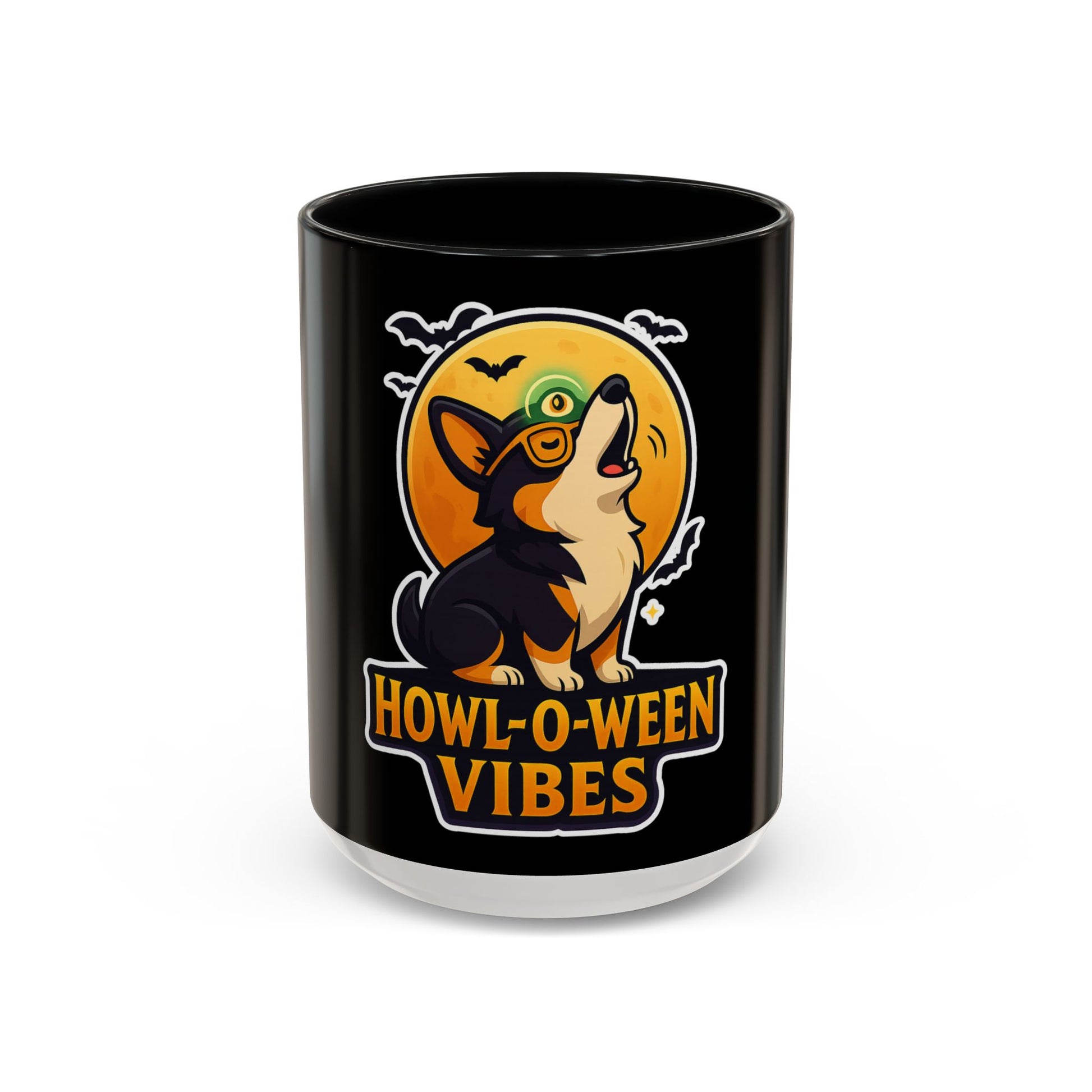 Howl-O-Ween Vibes Coffee Mug, Halloween Mug, Dog Lover Gift, Black Accent Coffee Cup, Unique Pet Owner Mug, Cute Halloween Decoration