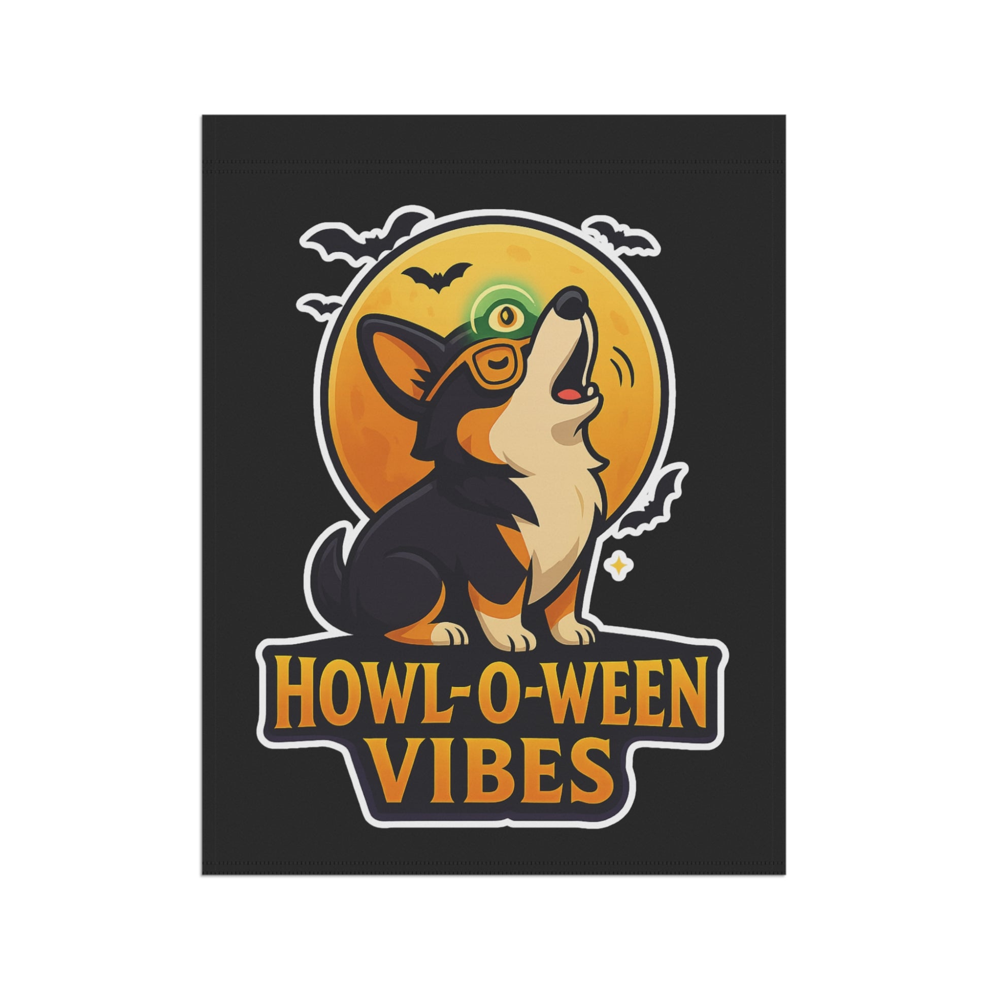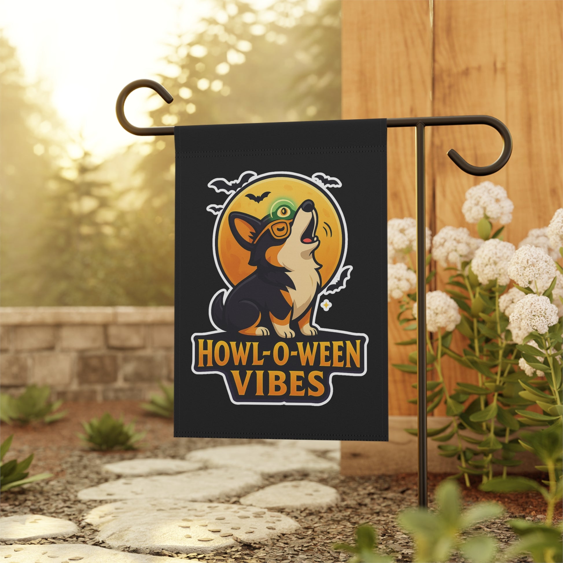 Howl-O-Ween Vibes Garden Banner, Halloween Yard Decor, Dog Lover's Outdoor Flag, Autumn Home Decoration, Festive Corgi Sign