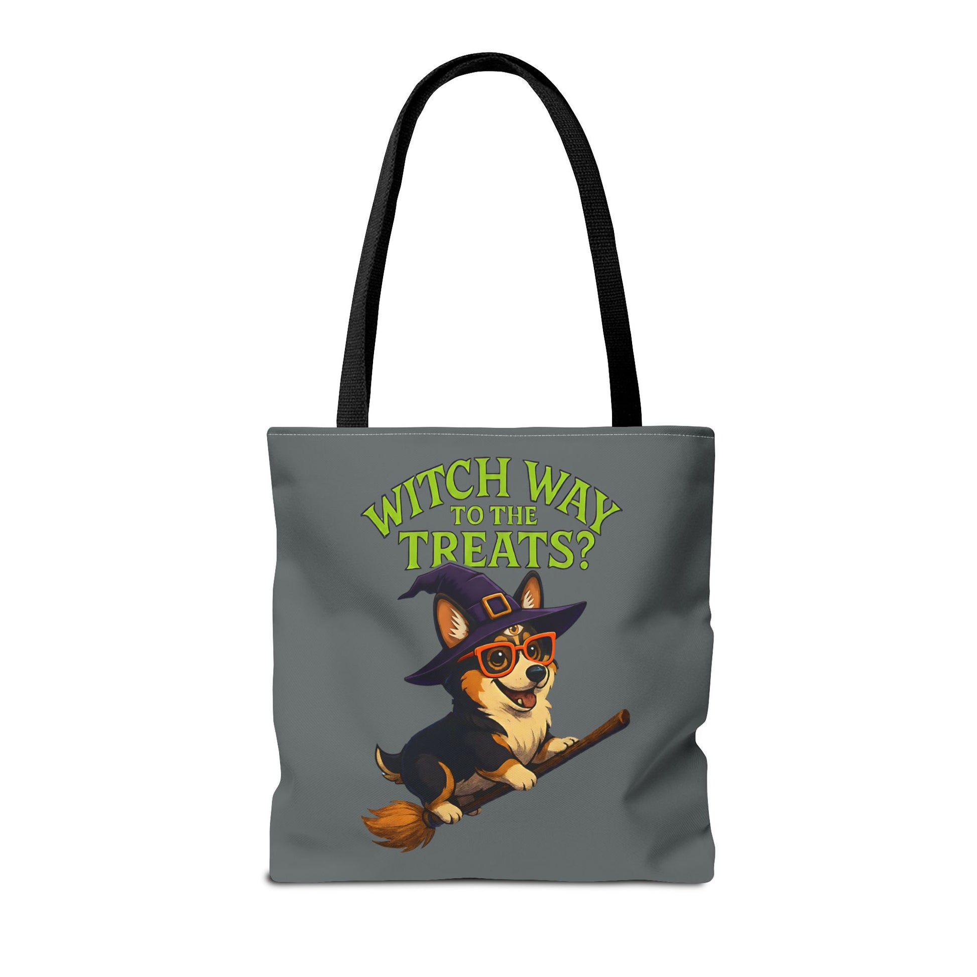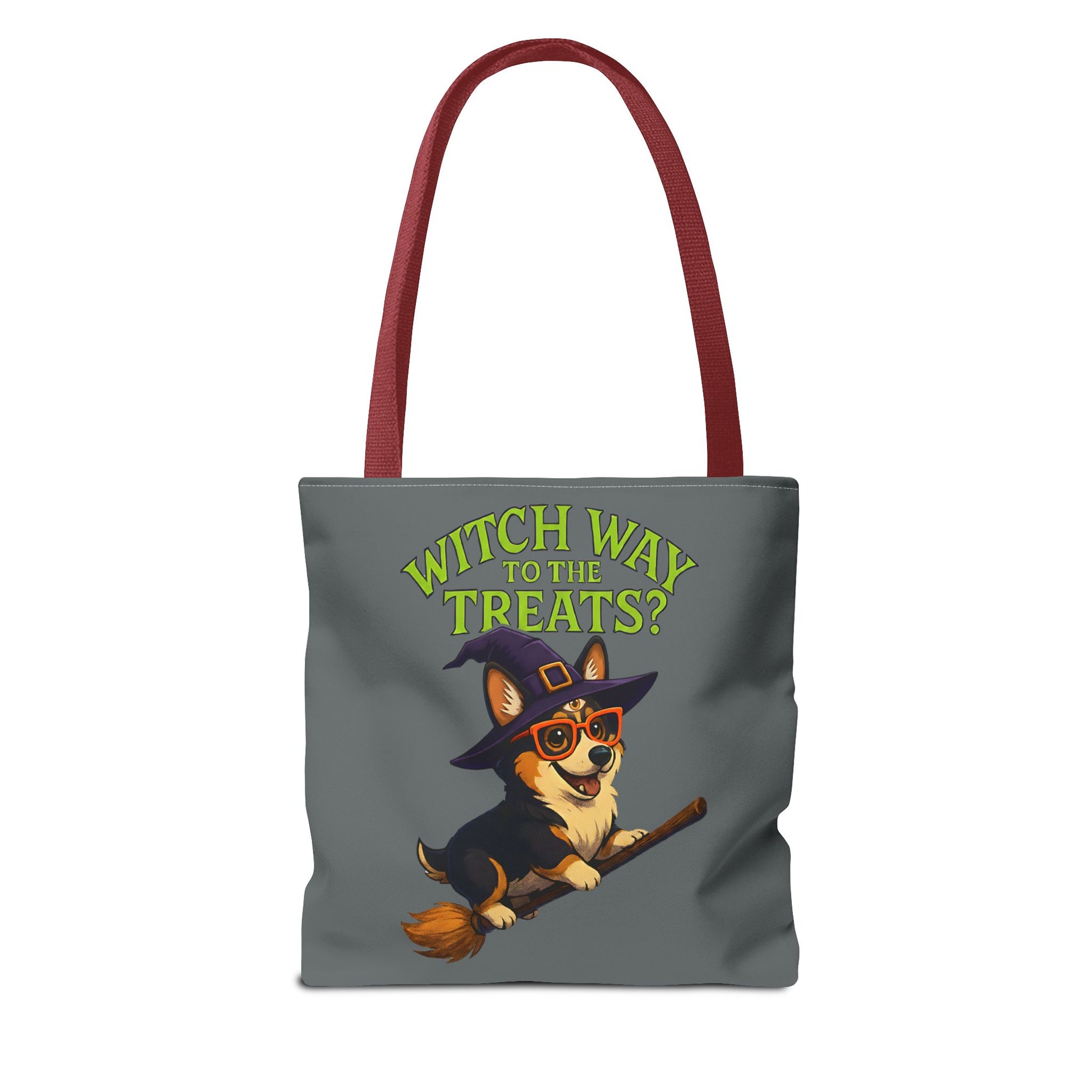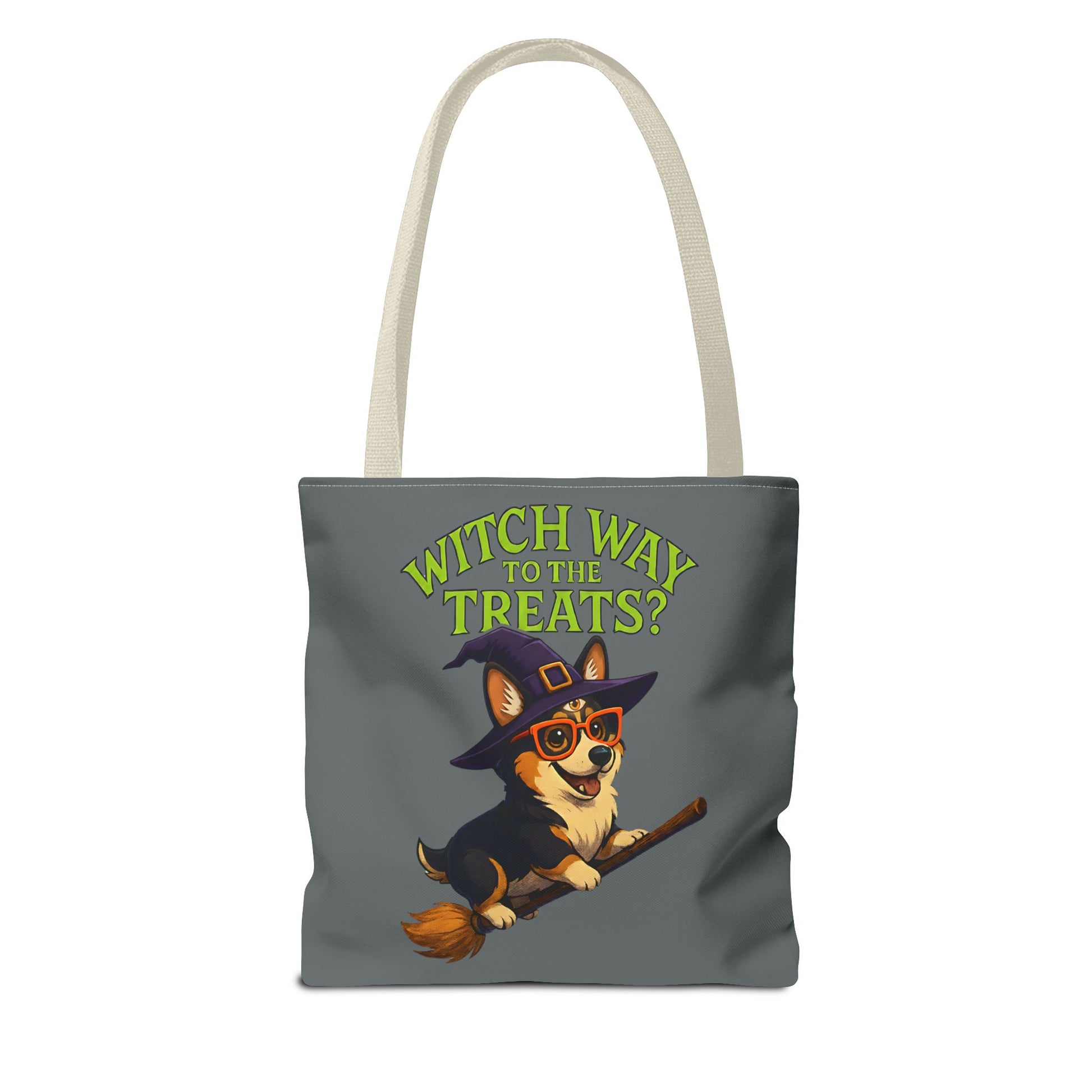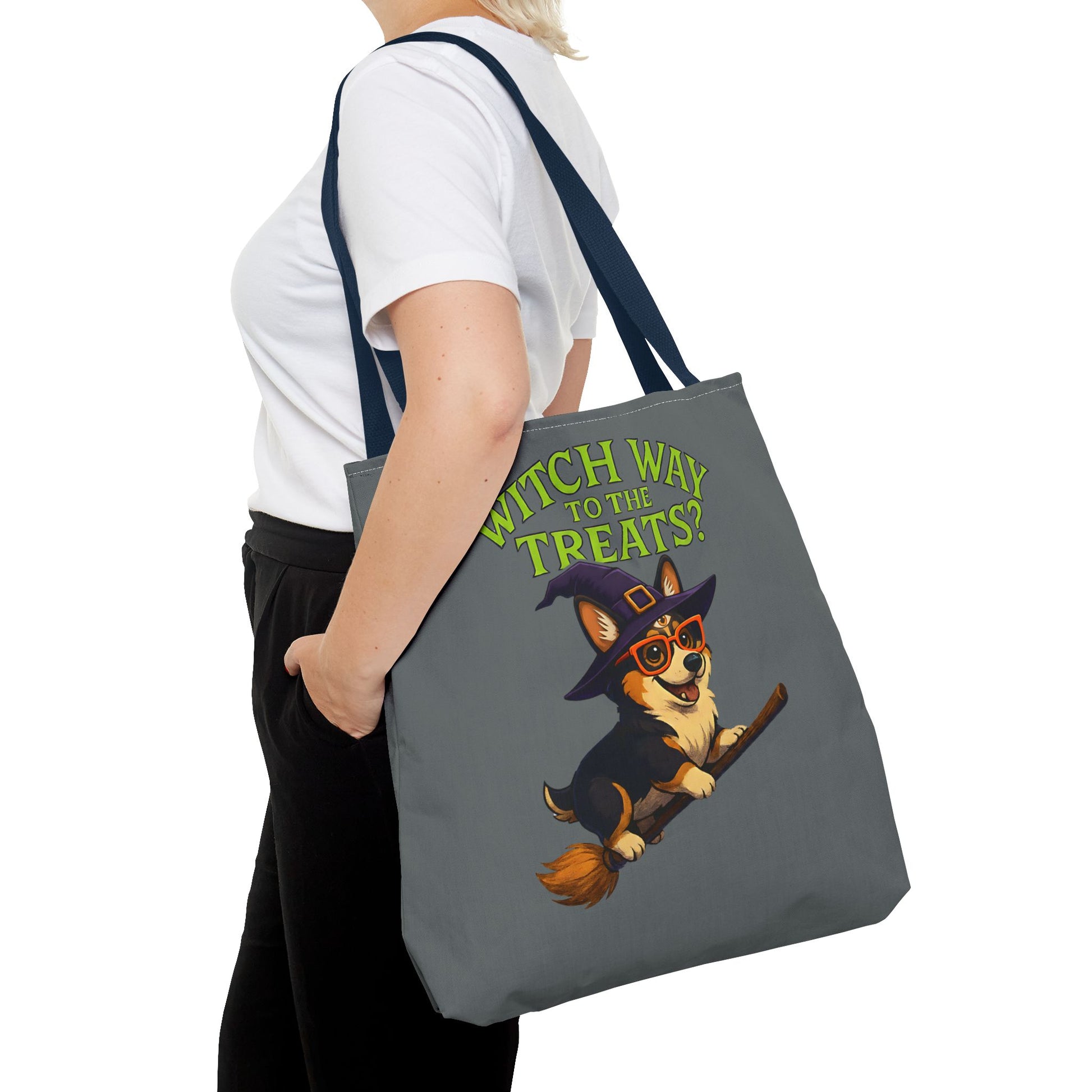 Witch Corgi Tote Bag, Halloween Bag, Dog Lover Gift, Trick or Treat Bag, Cute Corgi Accessories